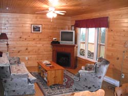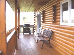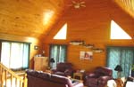 The 4,000 sq ft log lodge consists of five bedrooms, 3 bathrooms,and a modern kitchen and dining area. The livingroom is spacious, with its cathedral ceiling and large windows offering a spectacular view